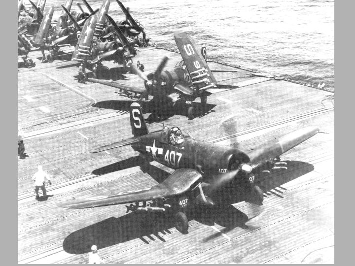 Corsairs on a Navy carrier in the Yellow Sea.